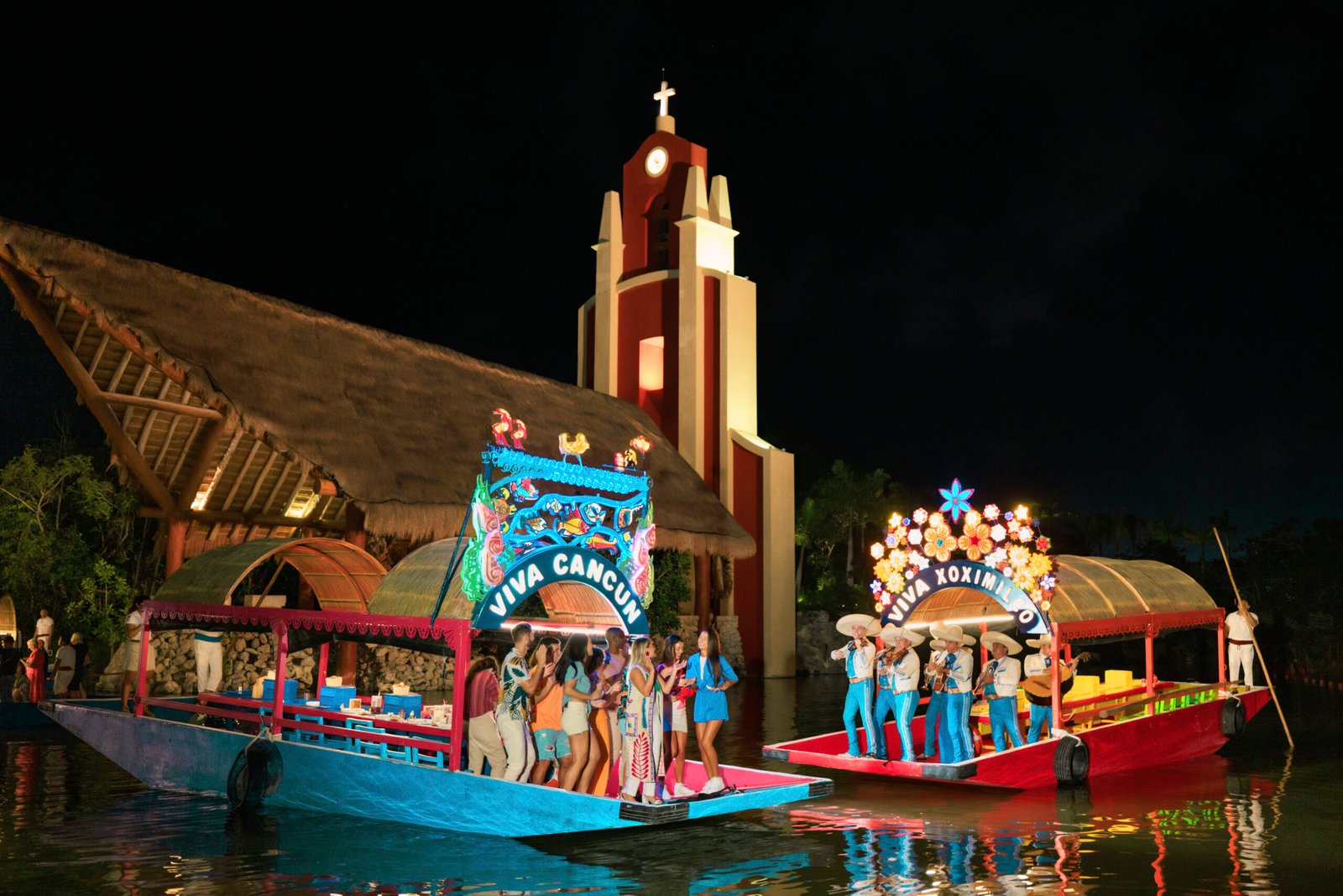 Desde el primer momento, cada grupo es recibido con una vibrante fiesta mexicana a bordo de las trajineras, las típicas embarcaciones mexicanas que hacen de esta travesía la única fiesta flotante de Cancún.