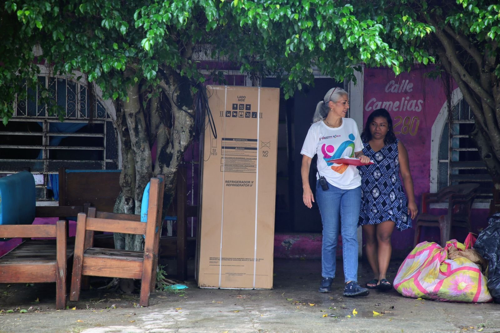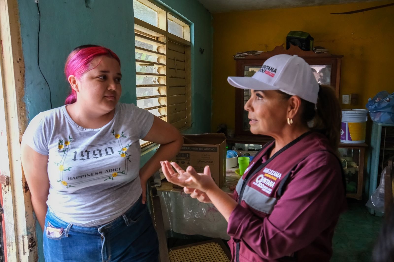 Durante un recorrido por la calle Camelias, esquina con José María Morelos, de esta capital, la gobernadora de Quintana Roo explicó que 18 millones son para apoyos en especie, mediante la adquisición de refrigeradores, estufas, colchones, comedores, entre otros, y reponer los que se dañaron.