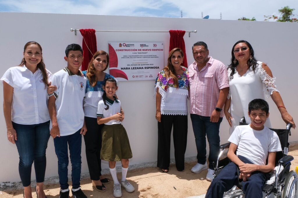 Playa del Carmen. – Más de 71 alumnas y alumnos del Centro de Atención Múltiple (CAM) “Jean Piaget”, de Playa del Carmen, cuentan ya con nuevas instalaciones, las que les entregó la gobernadora Mara Lezama Espinosa, consistentes en 6 aulas didácticas equipadas y que se construyeron con inversión de 18 millones 441 mil 328 pesos.